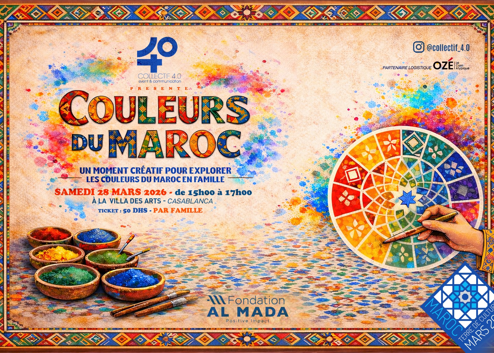 À Casablanca, la Villa des Arts s’apprête à accueillir un nouveau rendez-vous destiné aux familles autour du patrimoine culturel marocain. Le Collectif 4.0 y organise, le 28 mars prochain, une après-midi placée sous le signe des couleurs, en partenariat avec la Fondation Al Mada.