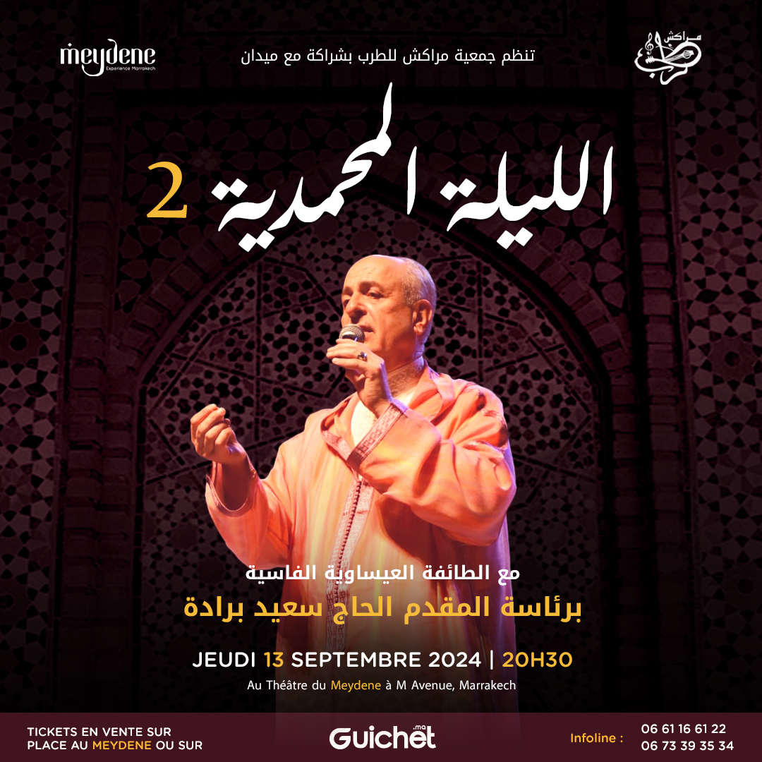 Le Théâtre Meydene a dévoilé sa programmation pour le mois de septembre 2024, marquée par une série de soirées dédiées à la célébration du Mawlid Al-Nabawi et un concert unique mêlant tradition et modernité. Ce mois de rentrée culturelle promet de résonner sous le signe de la spiritualité, de l’art, et de la fusion des genres musicaux.